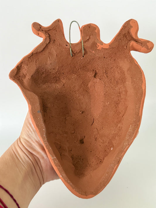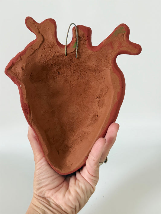Anatomical Clay Heart w/3D Flowers - Burnt Red