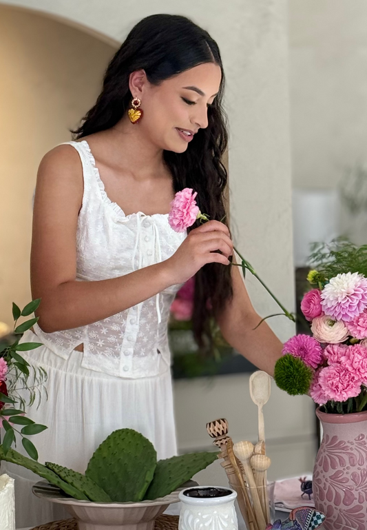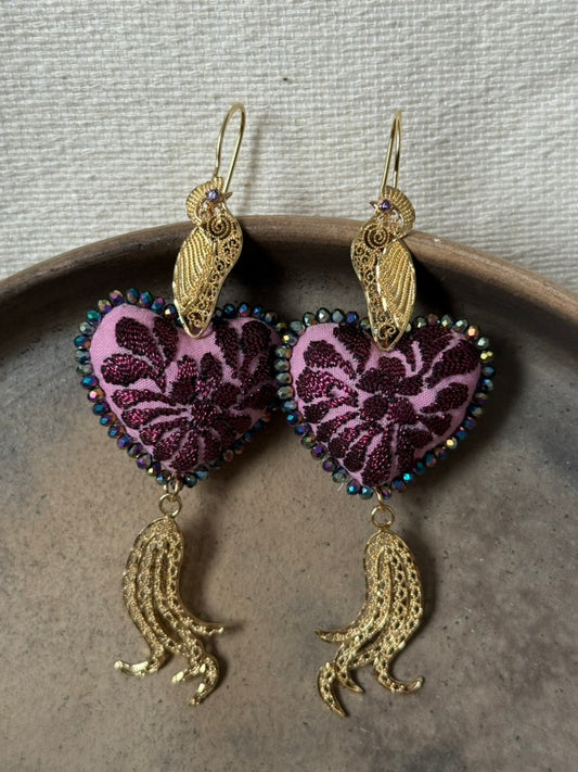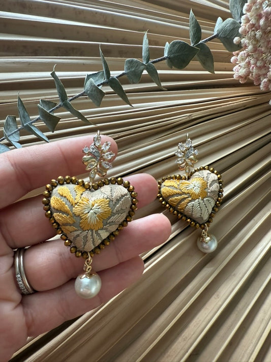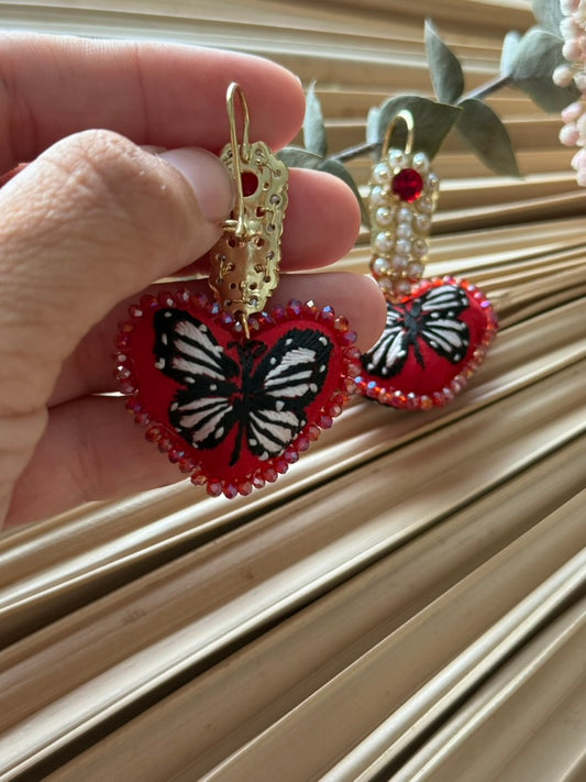 Hand Embroidered Heart Shaped Mariposa Earrings