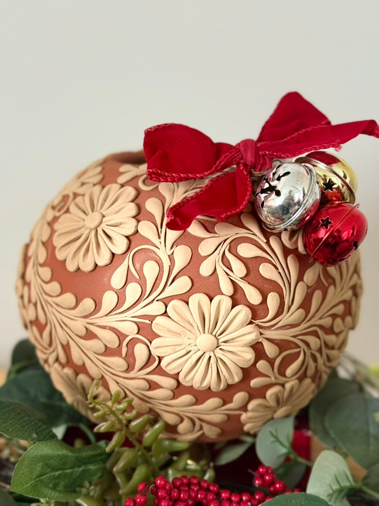 Allover Flower Design Intricate Clay Vase - No Neck