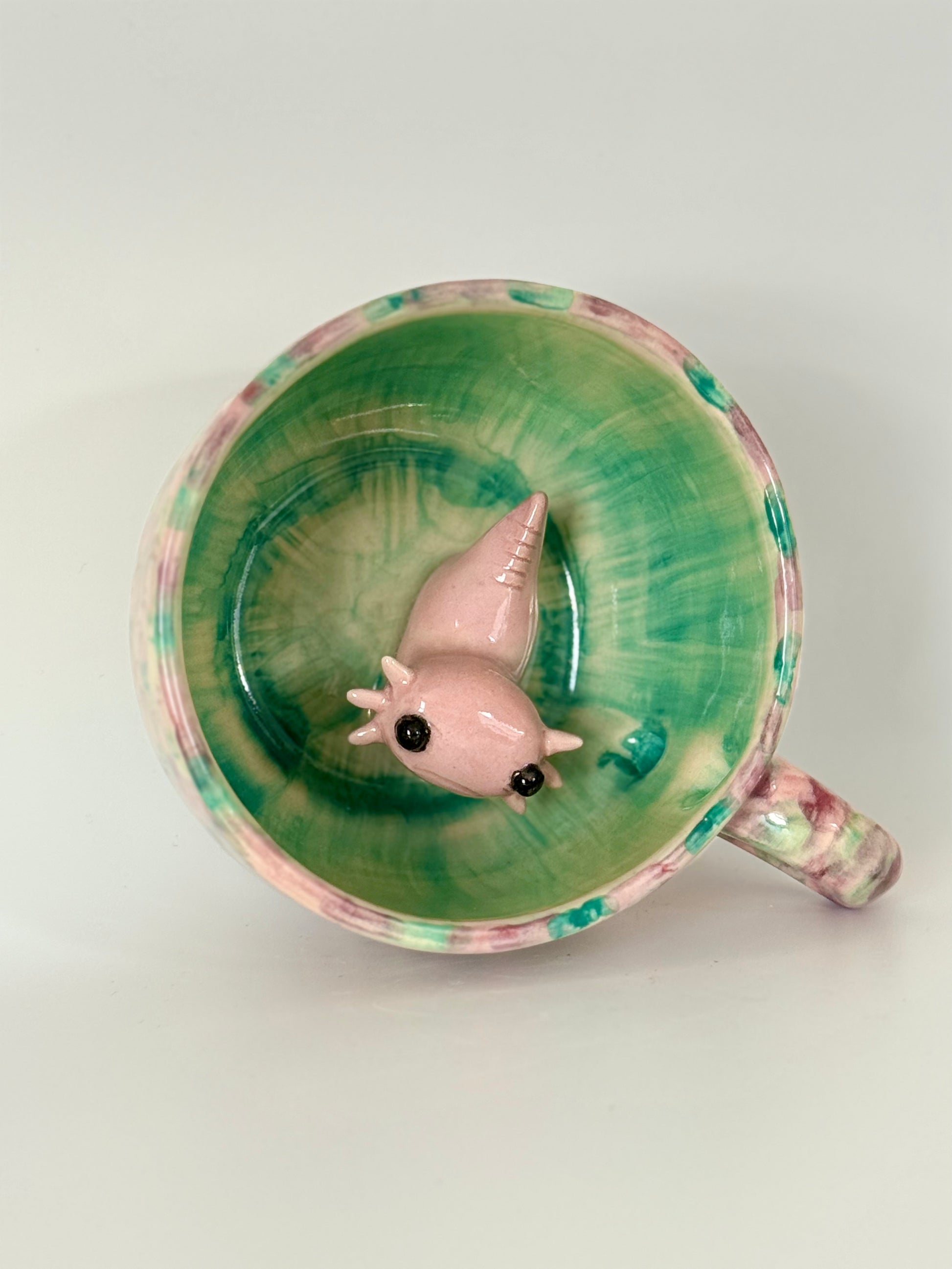 Meet the mug that makes every sip a little more magical. Hidden inside is the sweetest axolotl, waiting to brighten your day. At first, it’s just you and your drink but as your coffee or tea disappears, the adorable little axolotl slowly reveals itself, bringing a smile with every sip.