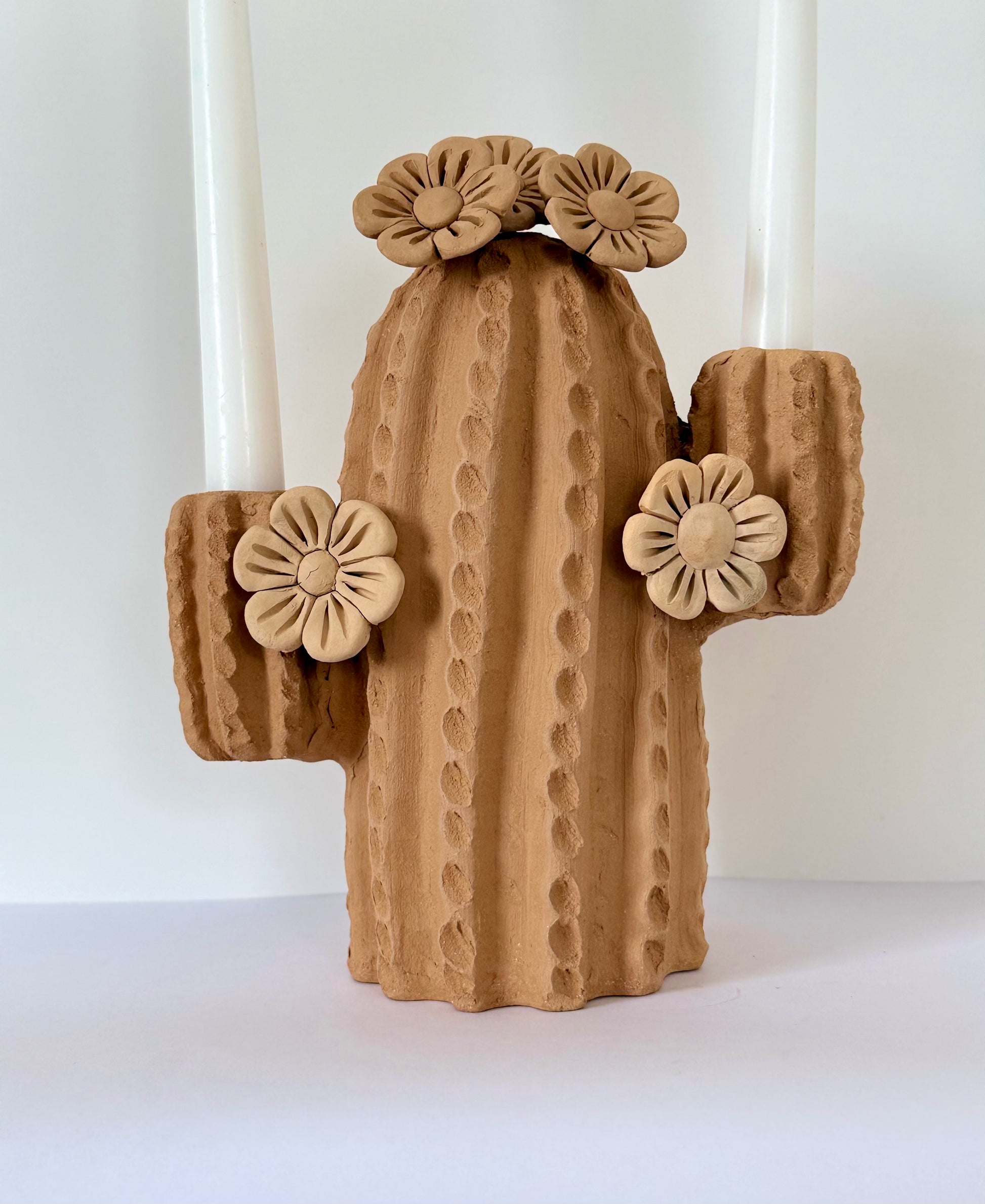Bring warmth and character to your space with this Natural Clay Cactus Candle Holder. Hand-shaped from natural clay, its sculptural cactus form adds an earthy, modern touch to any setting. Designed to hold standard candles, it creates a cozy glow while doubling as a striking decorative accent. Perfect for shelves, tables, or altar spaces. Each piece features subtle variations that make it truly one of a kind.