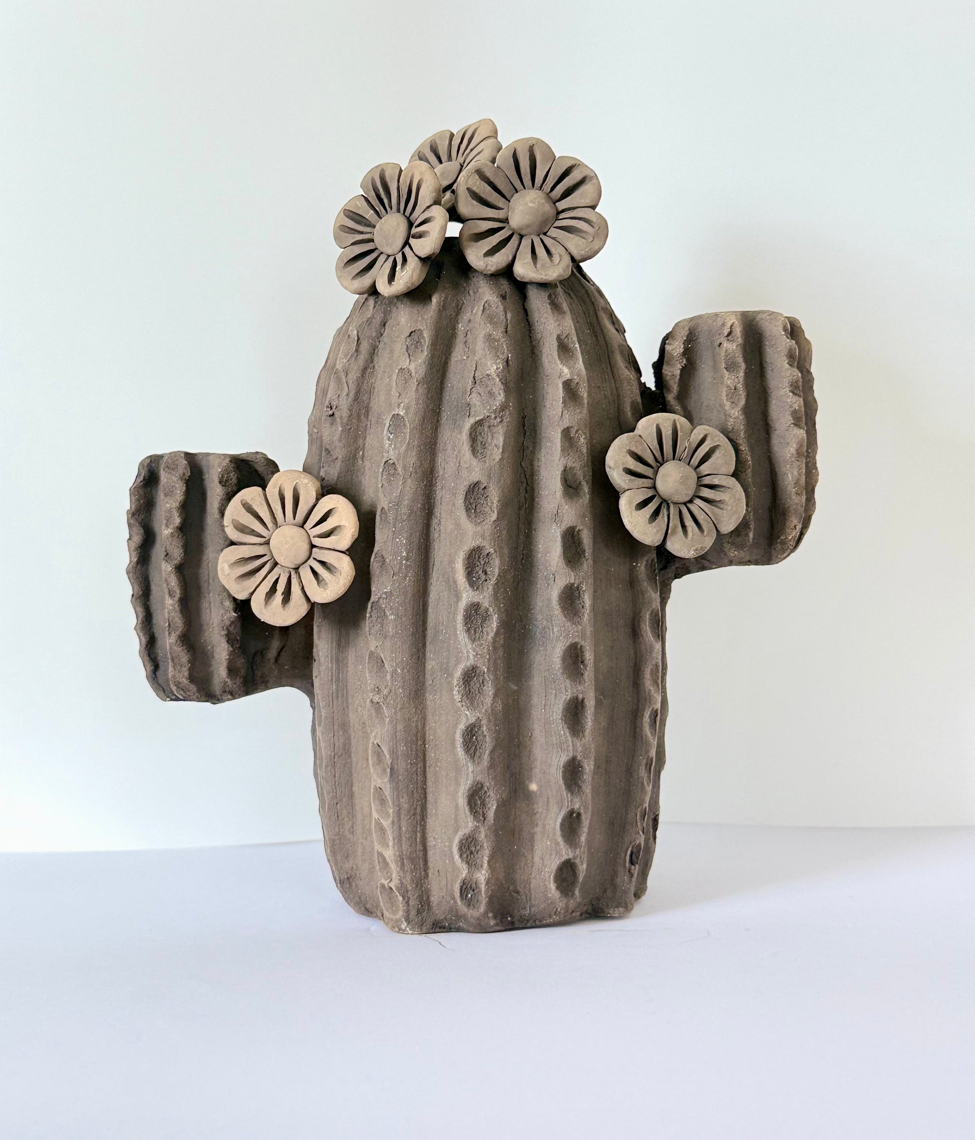 Smoked Clay Cactus Candle Holder